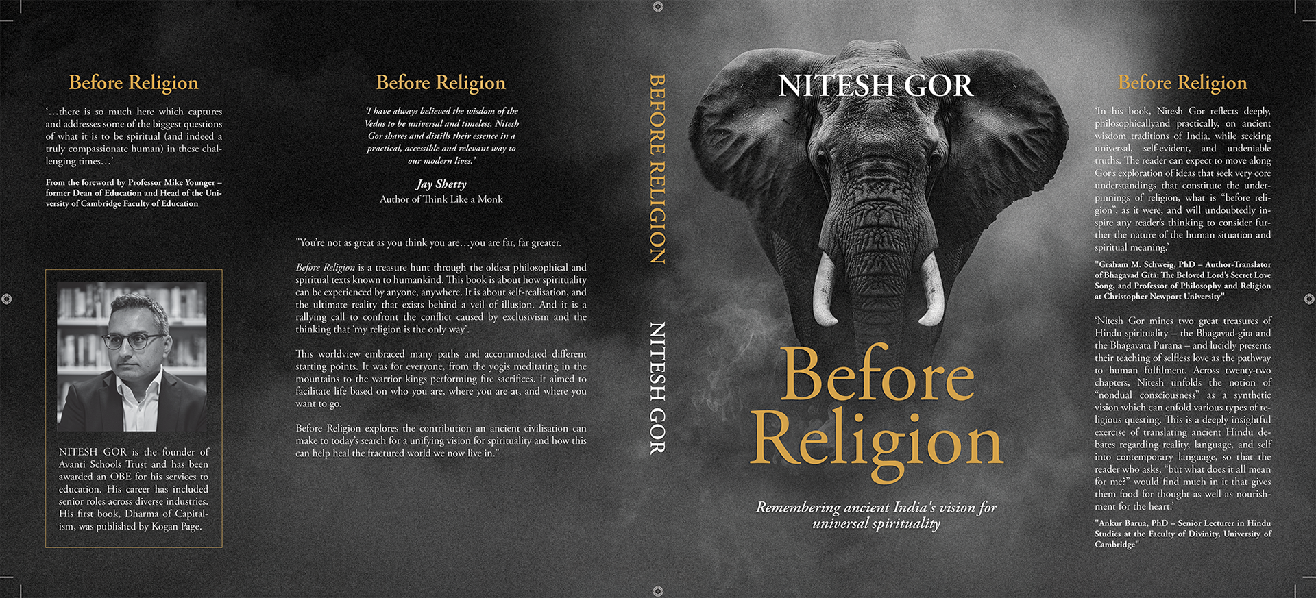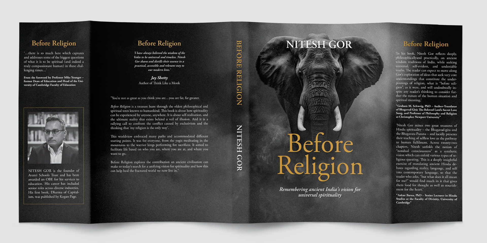 Dust Jacket cover design for "Before Religion" by Nitesh Gor